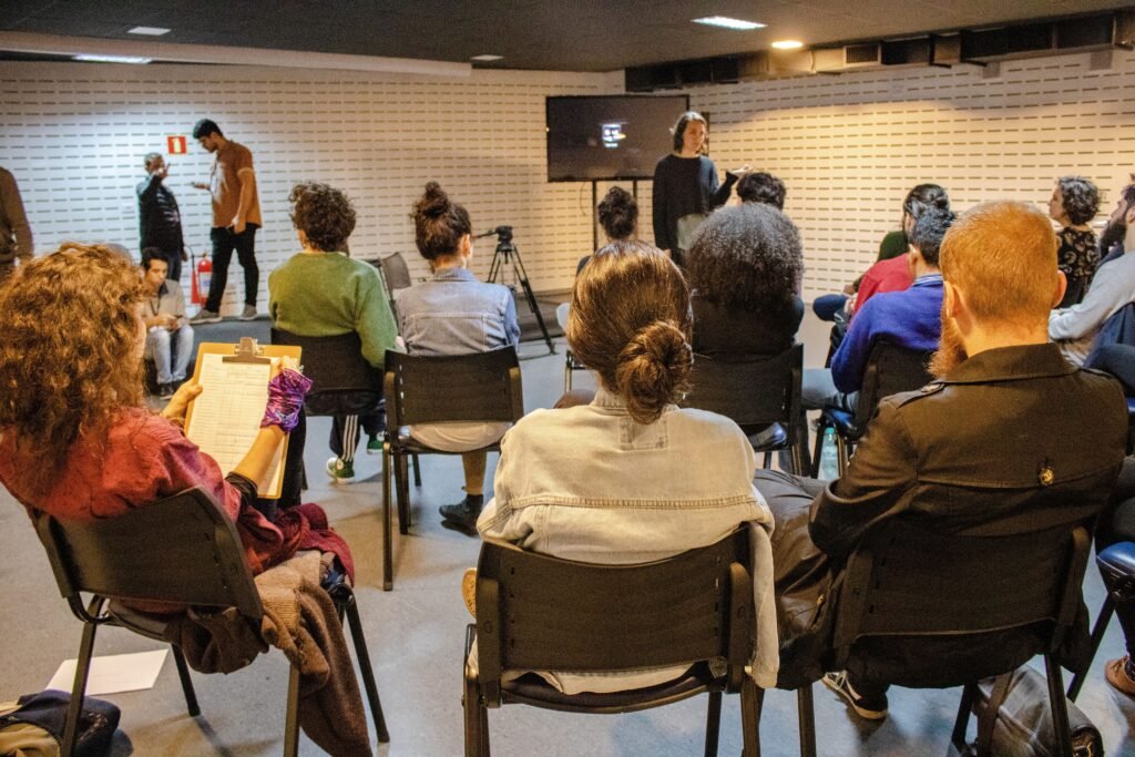 Fotos da oficina ministrada para o Olhar de Cinema – Festival Internacional de Curitiba (2019) Sala Valêncio Xavier do Cine Passeio.